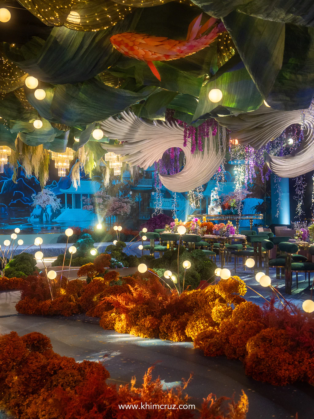 Inspired by the poetic beauty of oriental landscape paintings, where lakes and mountains exist in harmony, the wedding reception of Jeth & Nicole unfolds as a serene and immersive #styledbyKhim experience.